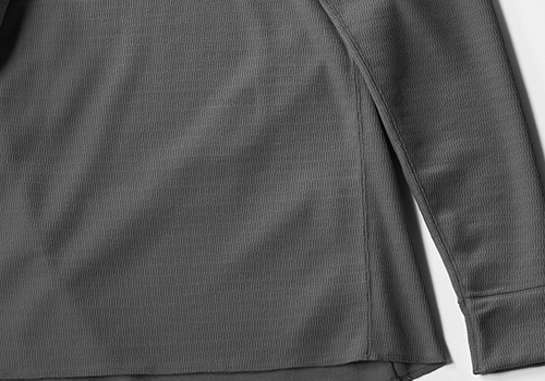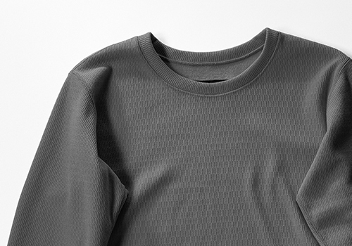 20AW時にAKM旗艦店別注としてリリースした長袖クルーネックTEE。 毎シーズン、リリースしているヘンリーネックの衿部分のみを変更し、その他のディテールは継承したモデルです。ニットのセーター同様、インナーとしてもアウターとしても活躍すること間違いない、着回しが利く、ベーシックな逸着です。