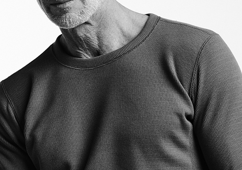 20AW時にAKM旗艦店別注としてリリースした長袖クルーネックTEE。 毎シーズン、リリースしているヘンリーネックの衿部分のみを変更し、その他のディテールは継承したモデルです。ニットのセーター同様、インナーとしてもアウターとしても活躍すること間違いない、着回しが利く、ベーシックな逸着です。
