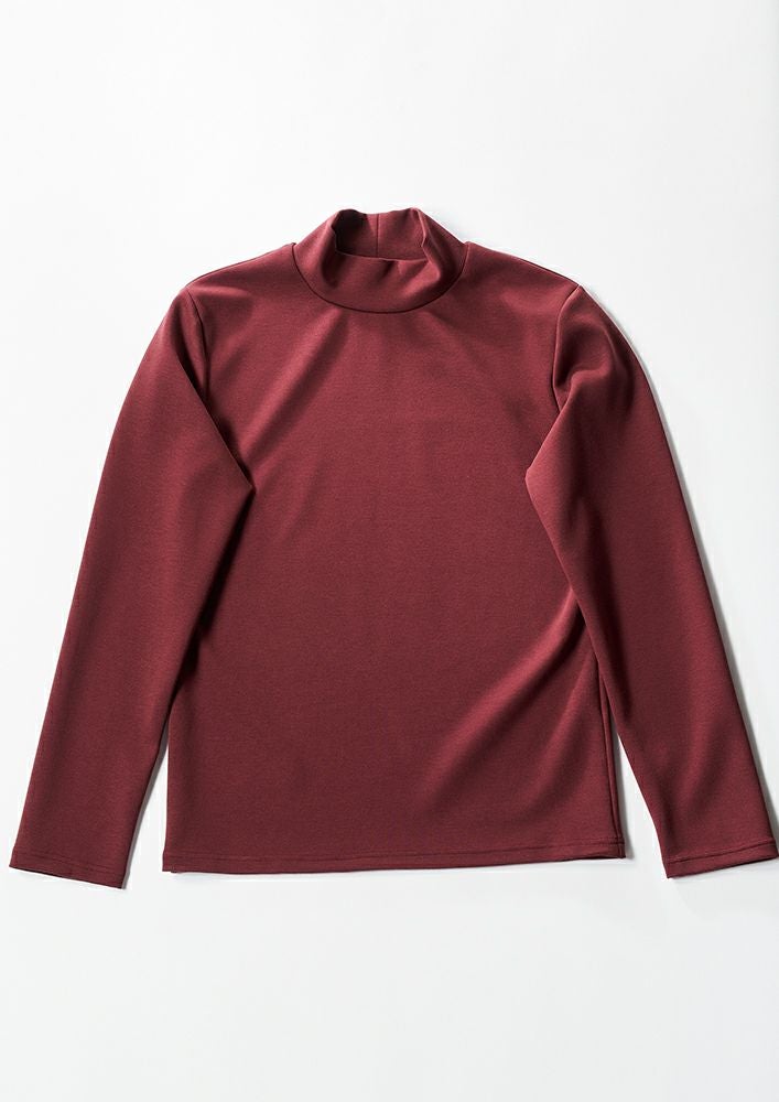 【 T240 / ALR026 / DUALWARM MOIST PONTI L/S MOCK-NECK -BURGUNDY-】