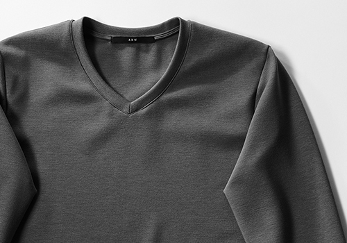長袖モックネック、Vネック、クルーネックカットソーの3型をご提案します。+