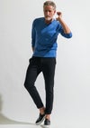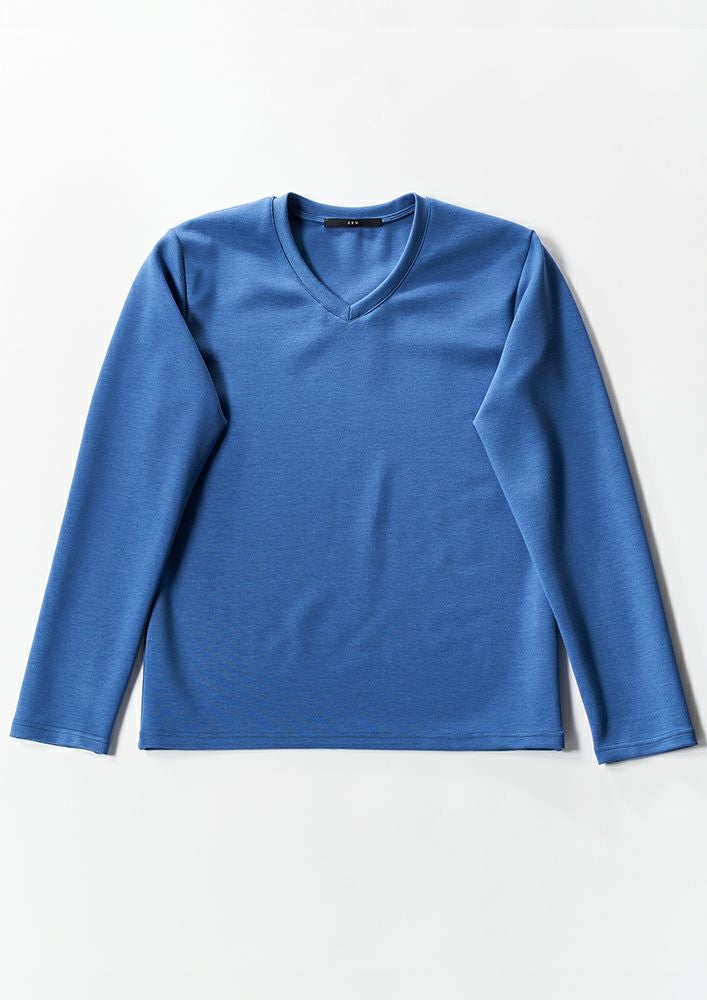 【 T241 / ALR026 / DUALWARM MOIST PONTI L/S V-NECK -L.BLUE- 】