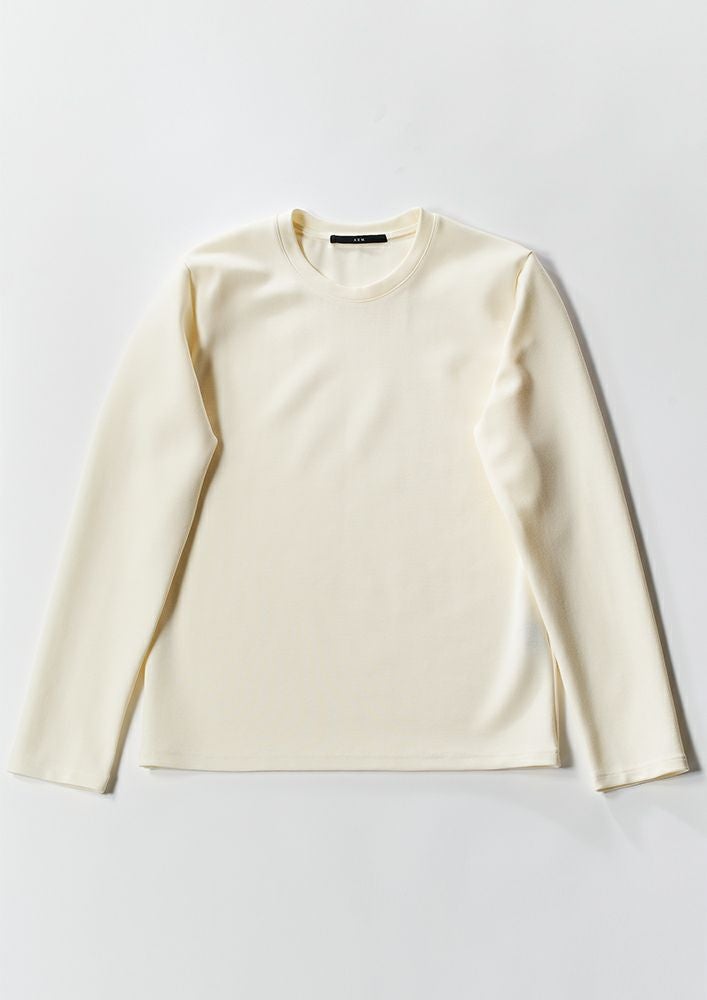 【 T242 / ALR026 / DUALWARM MOIST PONTI L/S CREW-NECK -WHITE- 】