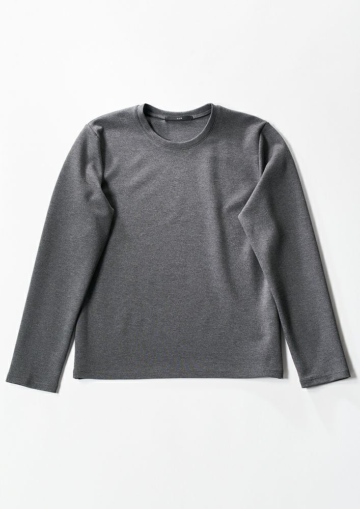 【 T242 / ALR026 / DUALWARM MOIST PONTI L/S CREW-NECK -D.GRAY- 】