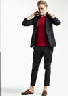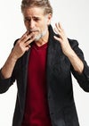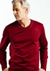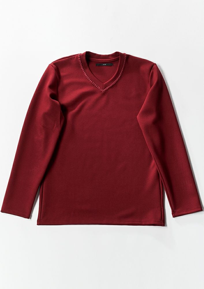 【 T243 / ALR026 / DUALWARM MOIST PONTI L/S HAND STITCH V-NECK -RED- 】