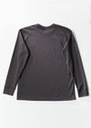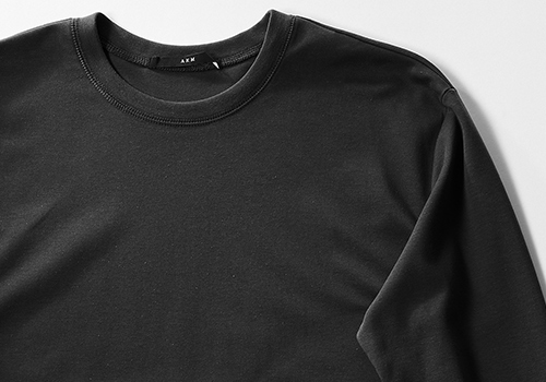 AKM定番のクルーネックの長袖Tシャツです。シンプルでベーシックなアイテムだからこそ、毎シーズン、身巾や衿の深さ、形状など改良を重ねています。衿と袖口はリブ(フライス)仕様です。