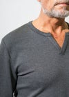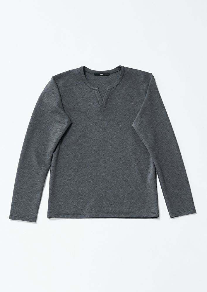 【 T272 / ALR031 / DUALWARM MOIST PONTI L/S KEY-NECK -D.GRAY- 】