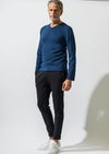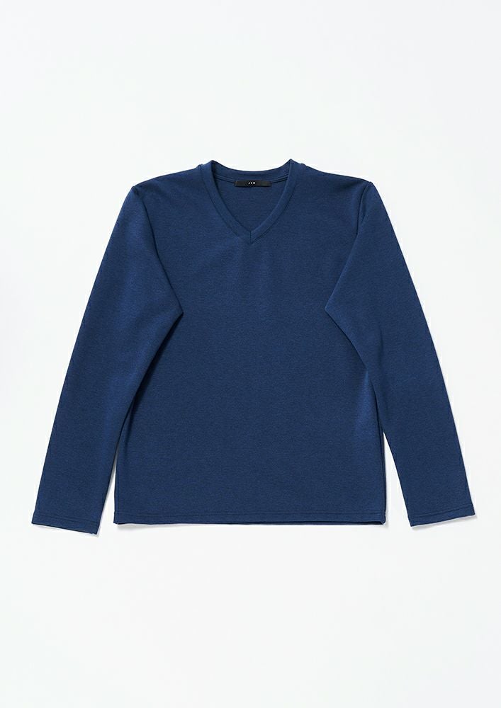 【 T273 / ALR031 / DUALWARM MOIST PONTI L/S V-NECK -NAVY- 】