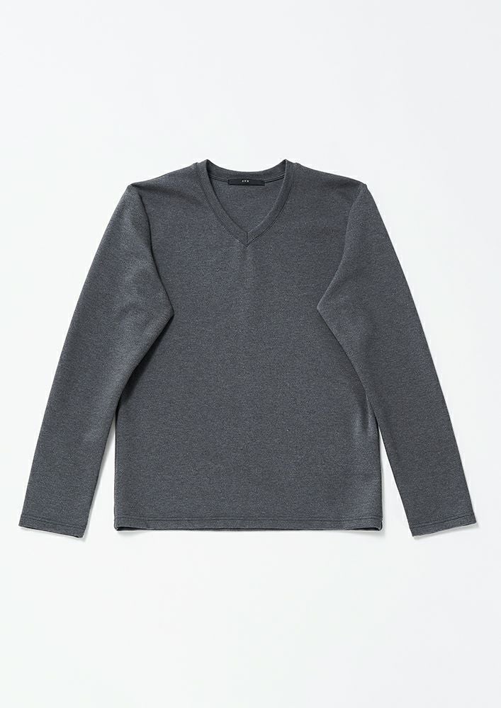 【 T273 / ALR031 / DUALWARM MOIST PONTI L/S V-NECK -D.GRAY- 】