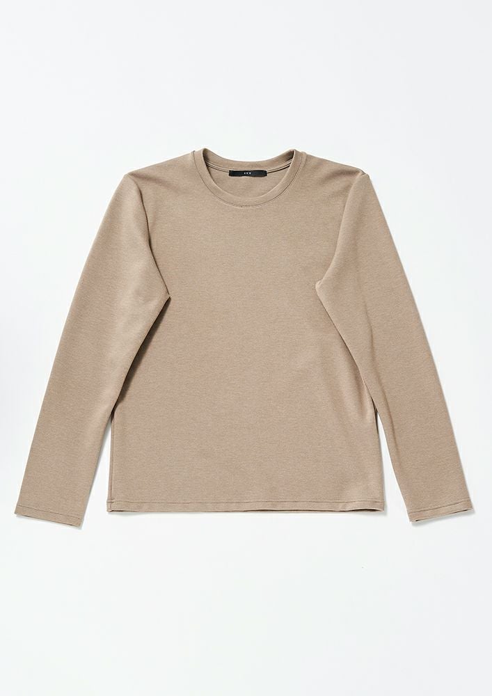 【 T274 / ALR031 / DUALWARM MOIST PONTI L/S CREW-NECK -GRAY BEIGE- 】
