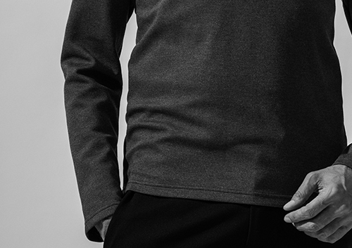 SWING EASY SET-UPに毎秋冬採用している発熱機能素材DUAL WARMベアポンチより若干肉薄でソフトな風合いのDUAL WALM モイストポンチを採用したベーシックカットソーシリーズ。