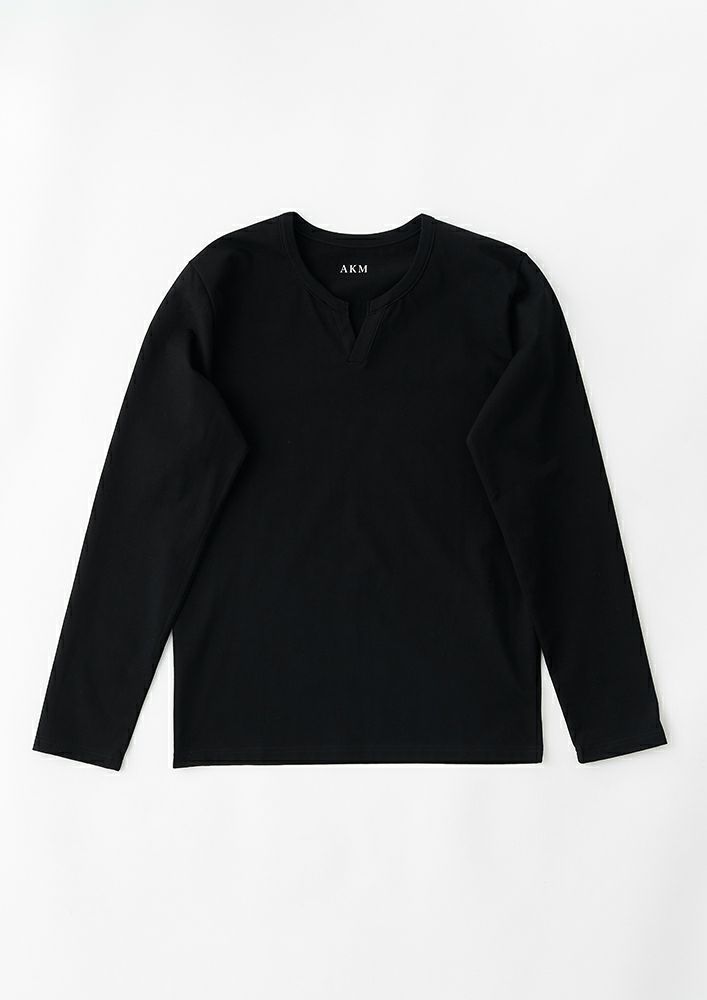 【T292 / CTN287 / ORGANIC HEAVY JERSEY L/S KEY NECK -BLACK-】