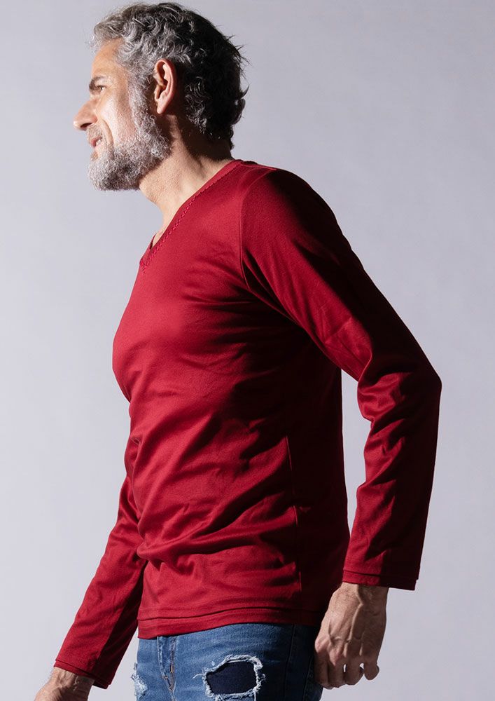 【AKM】L/S HAND STITCH V-NECK -RED-