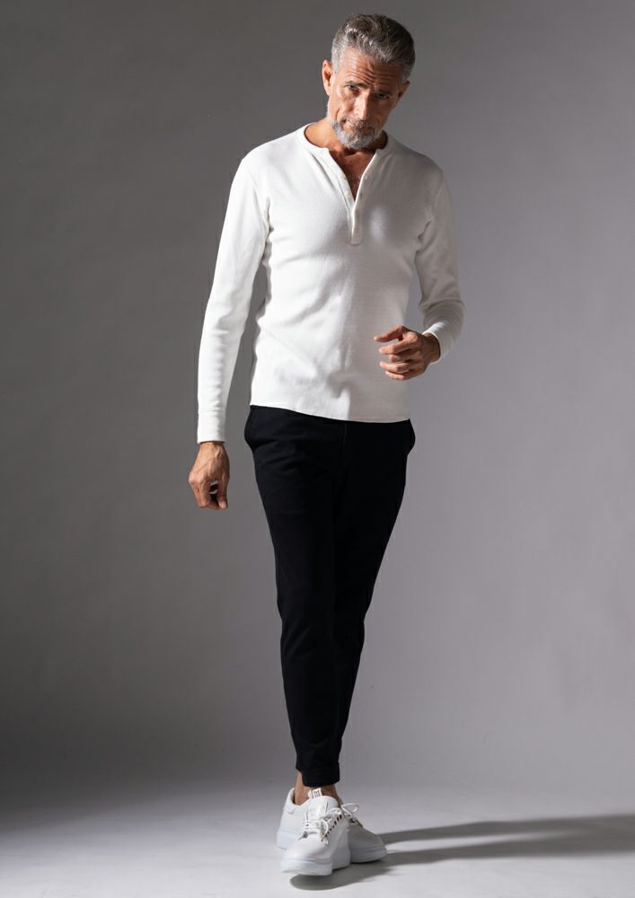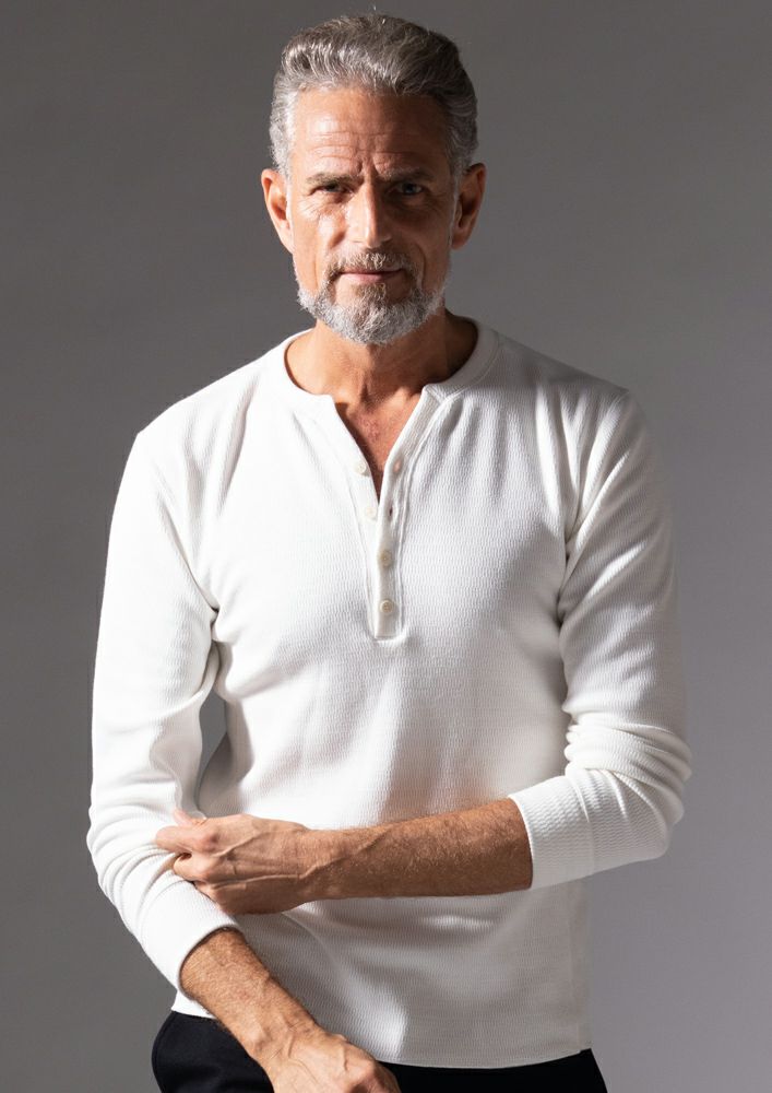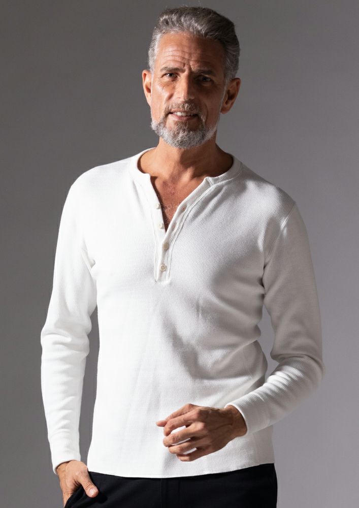 【AKM】THERMAL BOMBER L/S HENLEY NECK -WHITE-