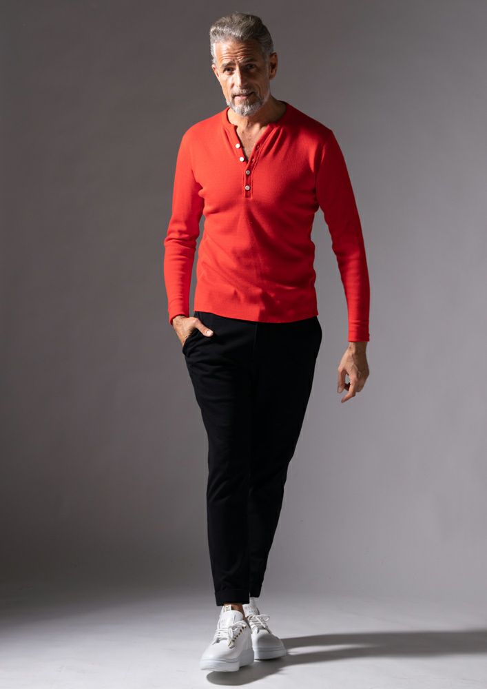 【AKM】THERMAL BOMBER L/S HENLEY NECK -ORENGE-