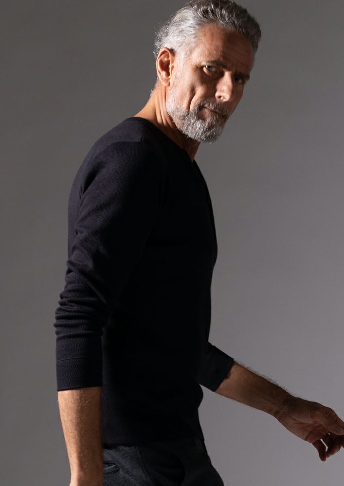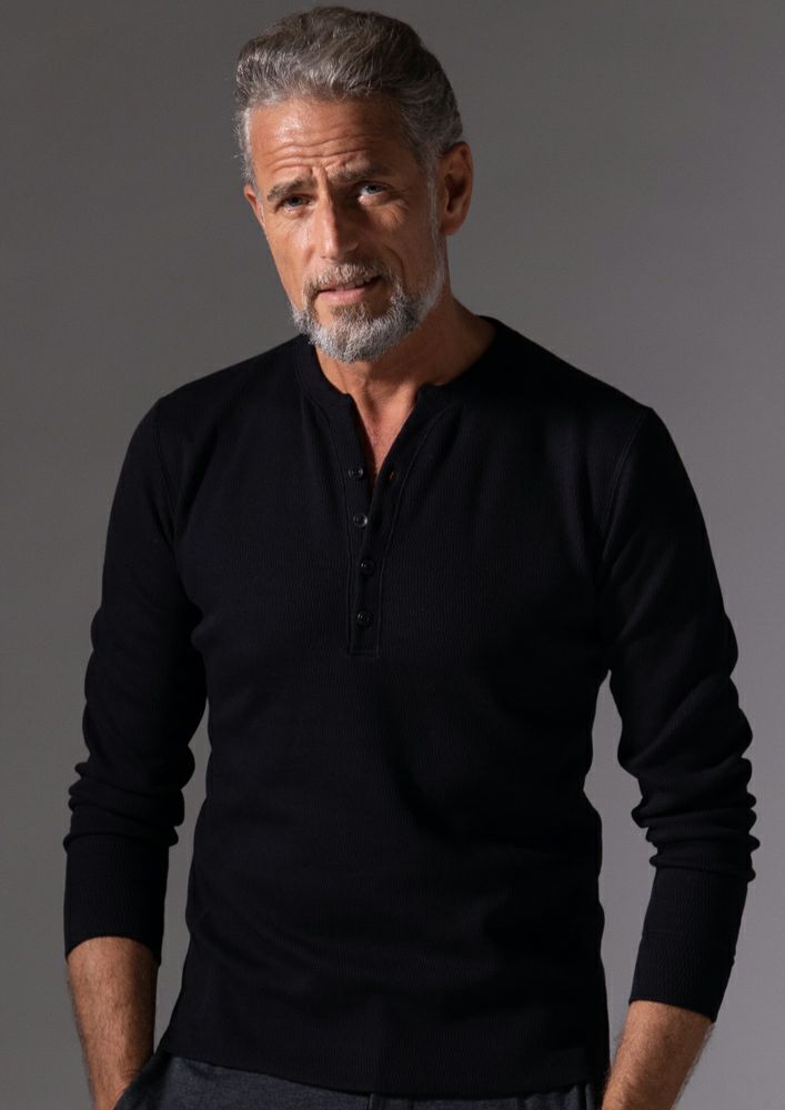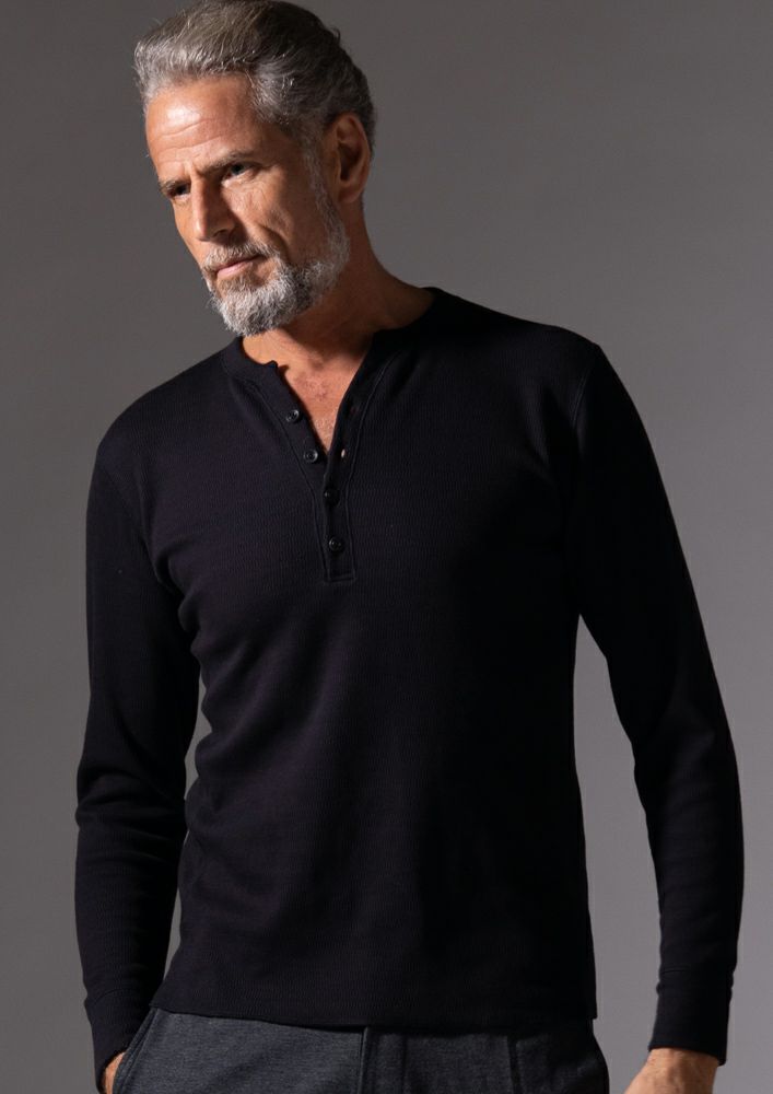 【AKM】THERMAL BOMBER L/S HENLEY NECK -BLACK-