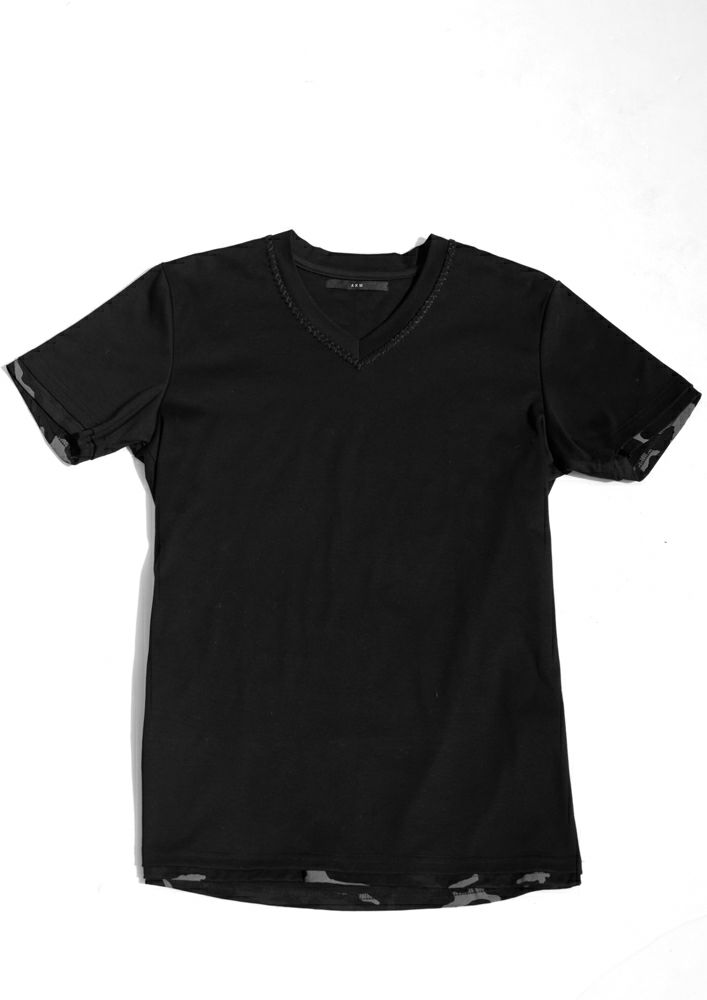 【AKM】S/S HAND STITCH V-NECK -BLACK/BLACK CAMO-