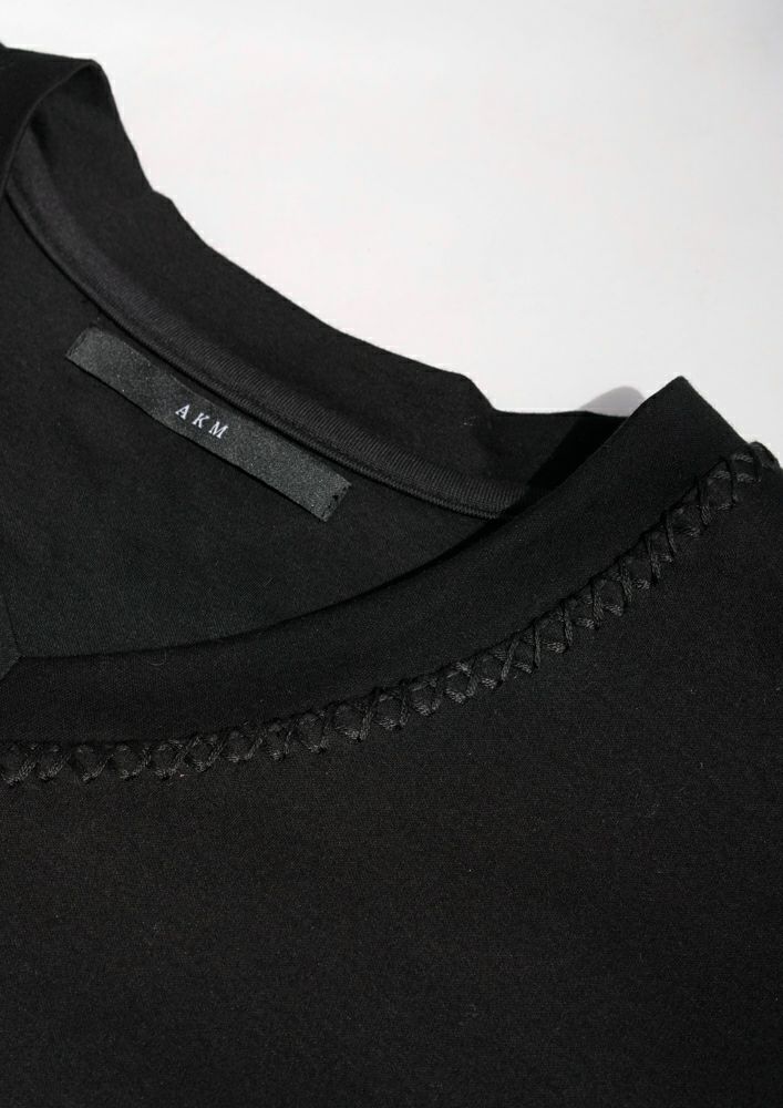 【AKM】S/S HAND STITCH V-NECK -WHITE/BLACK-