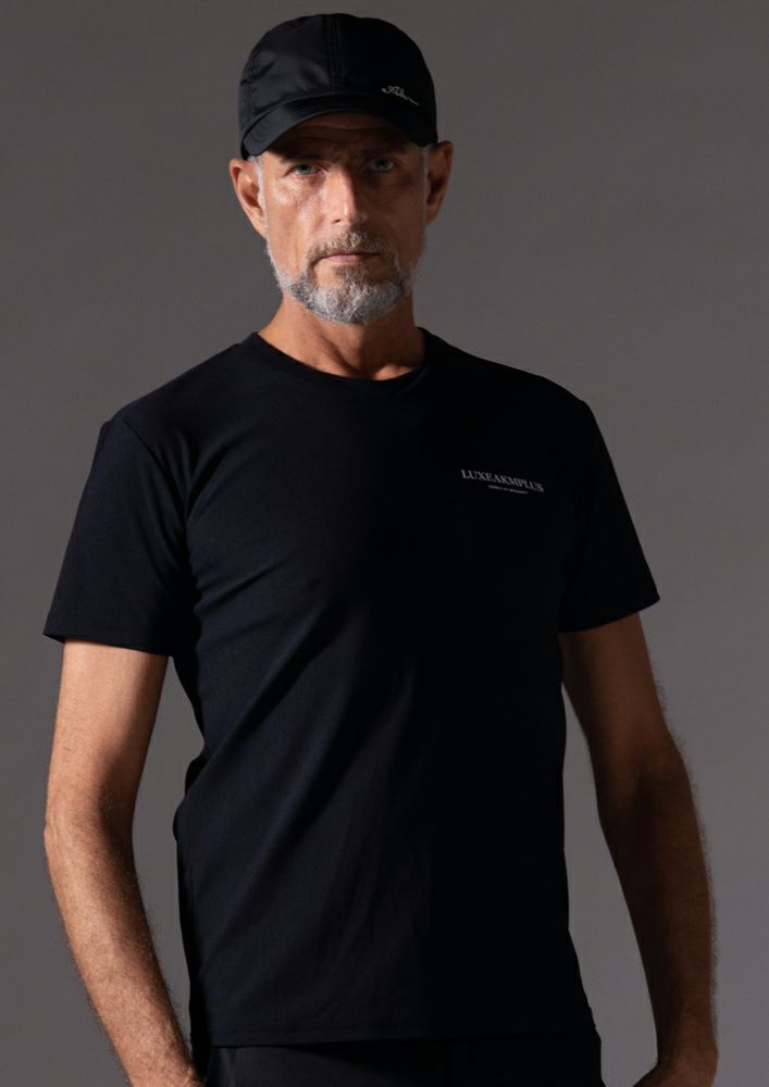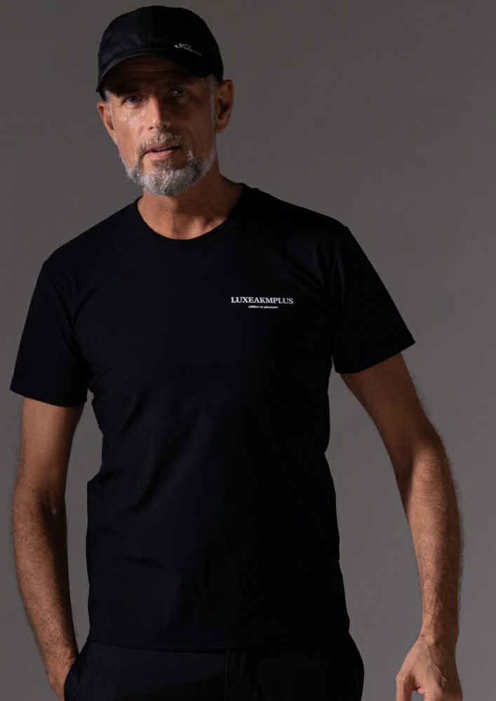【AKM PLUS】LOGO HYBRID NECK S/S -BLACK-