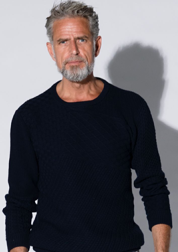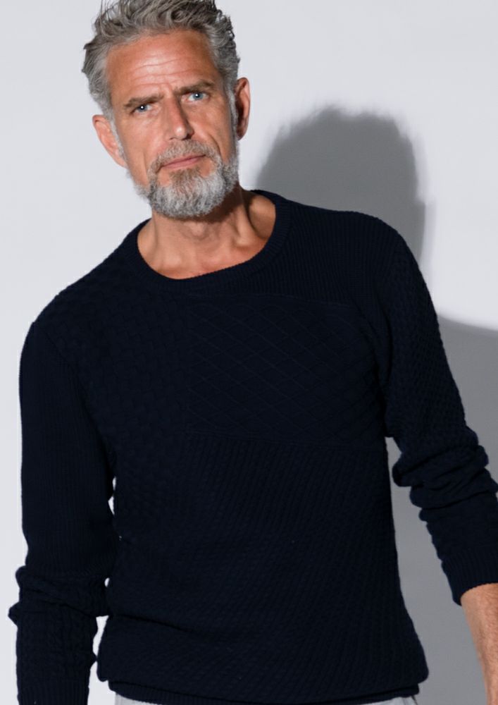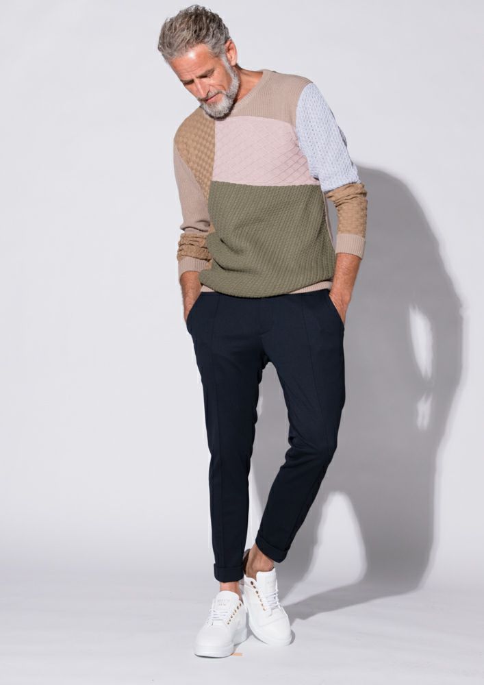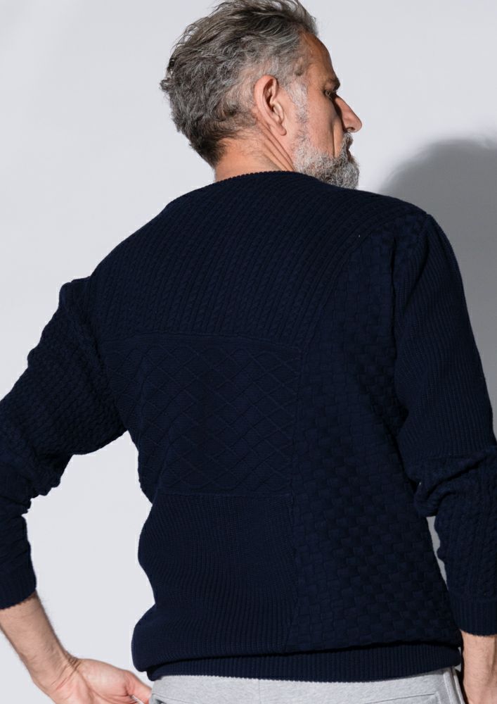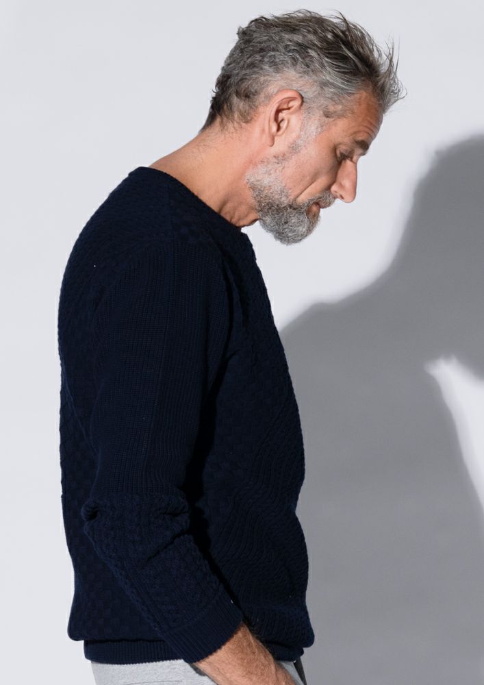【AKM】COMBED L/S RELAX PATCHWORK KNIT -NAVY-