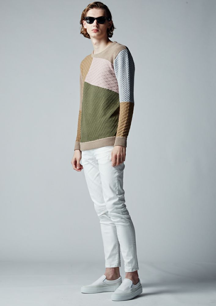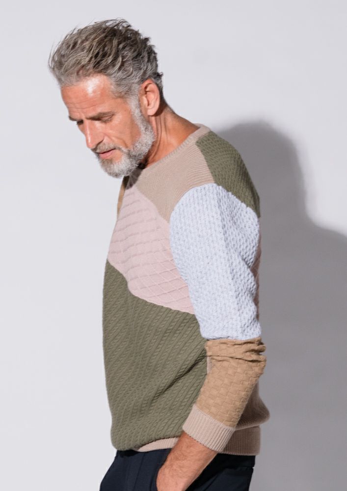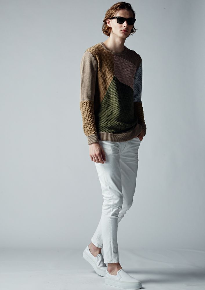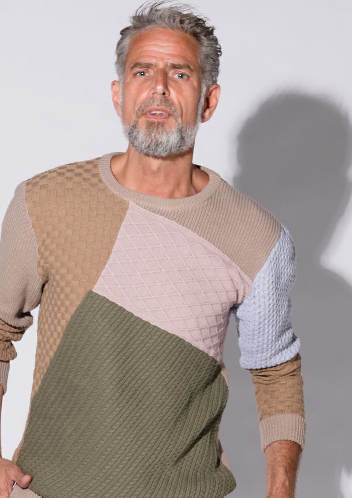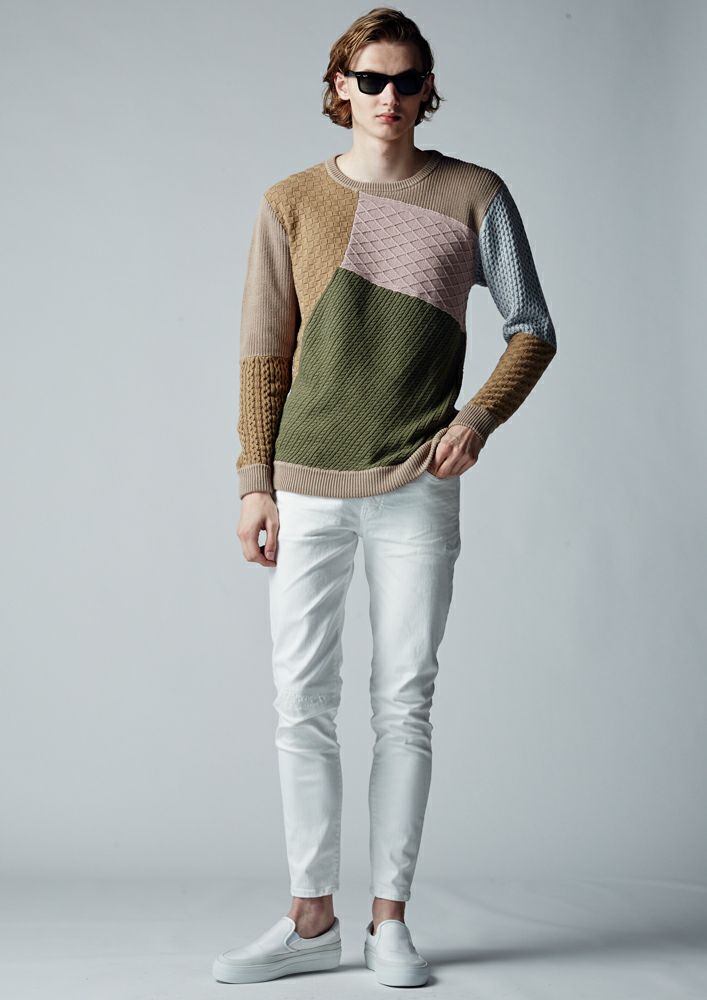 【AKM】COMBED L/S RELAX PATCHWORK KNIT -MULTI COLOR-
