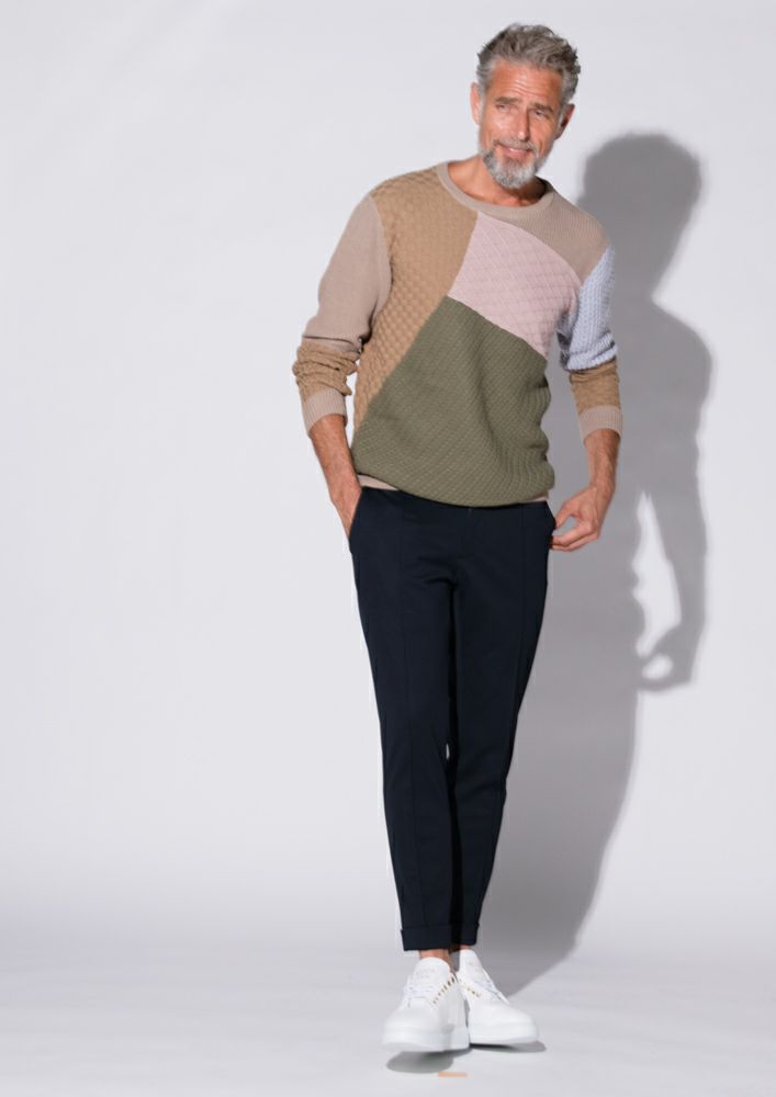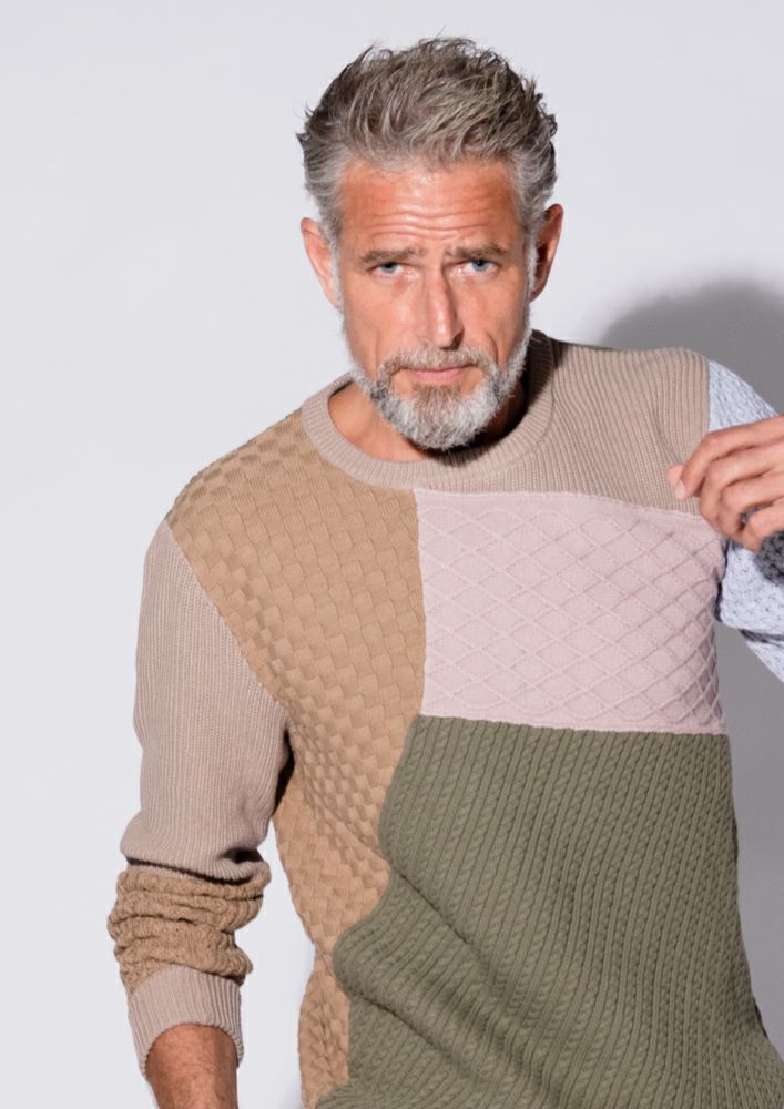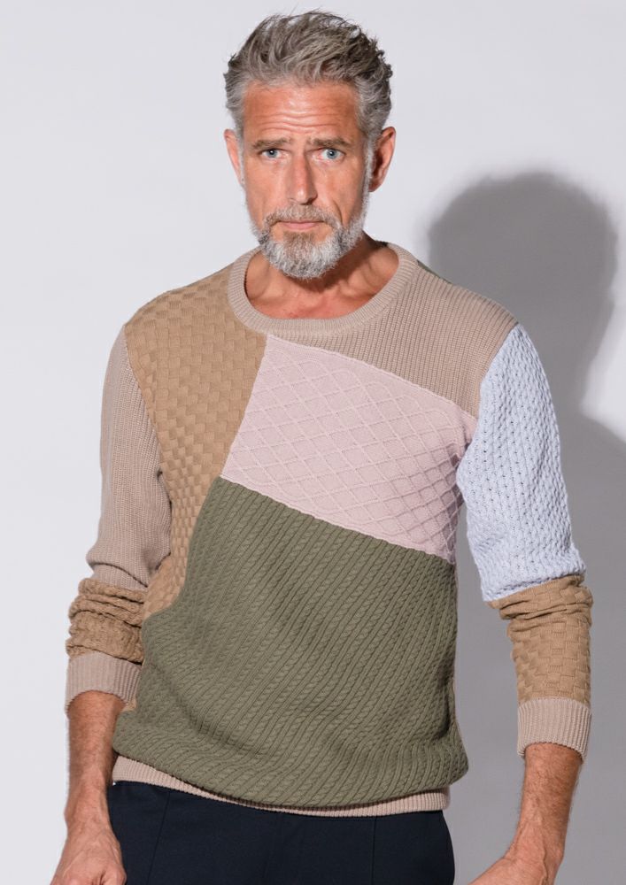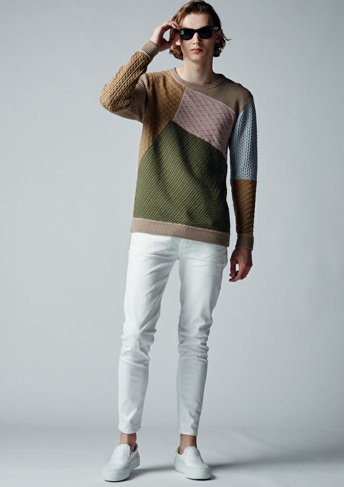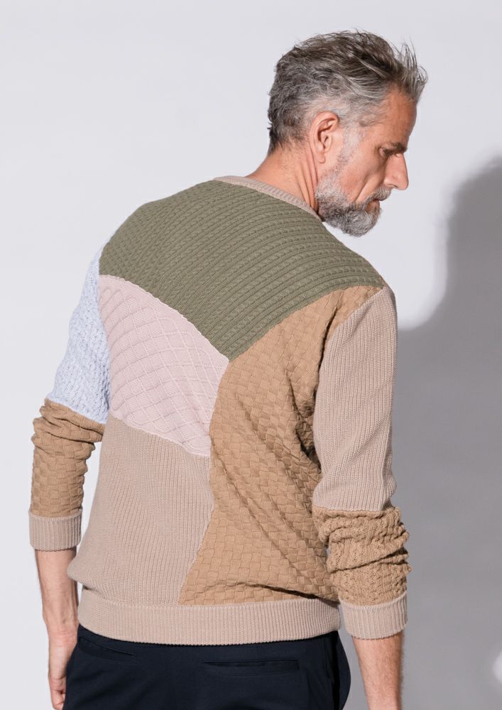 【AKM】COMBED L/S RELAX PATCHWORK KNIT -MULTI COLOR-