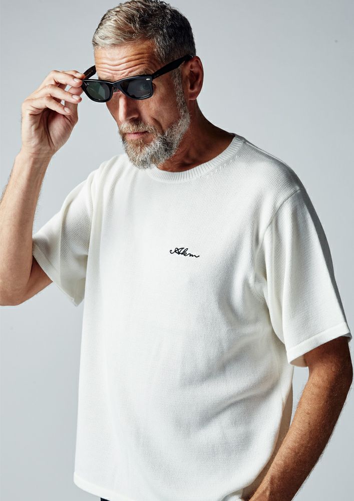 【AKM】S/S BIG CREW KNIT T-SH -WHITE-