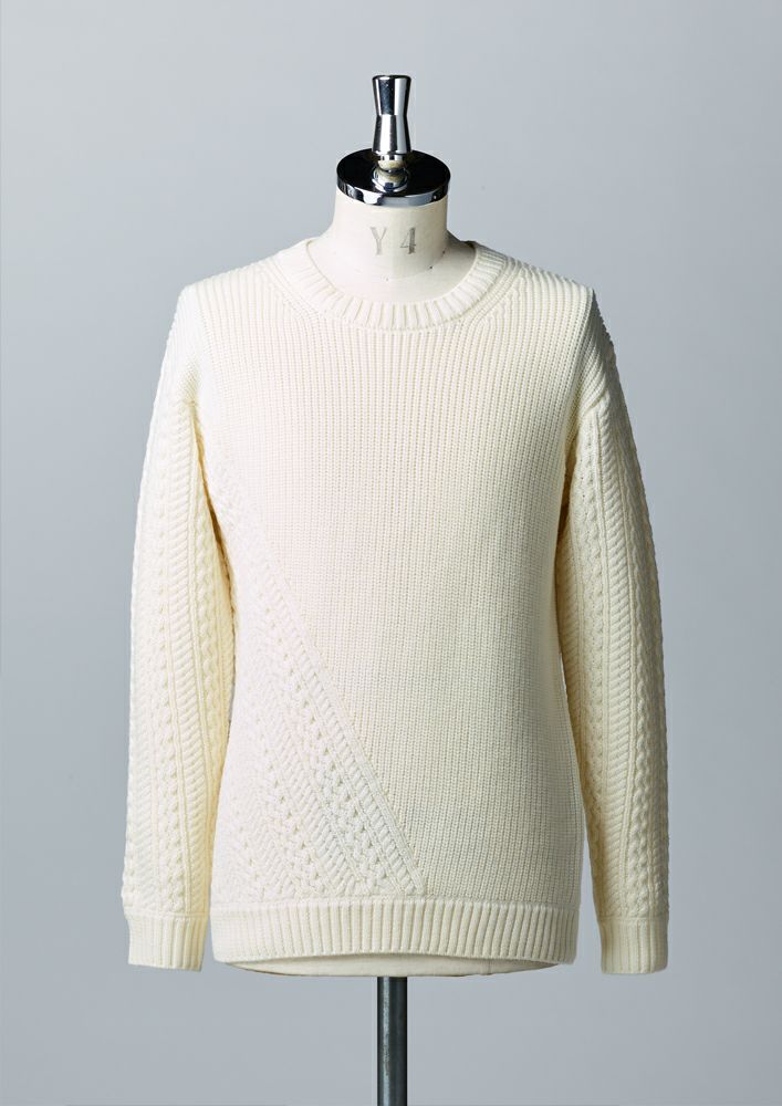 【AKM】CASHWOOL CRAZY FISHERMAN CREW -WHITE-