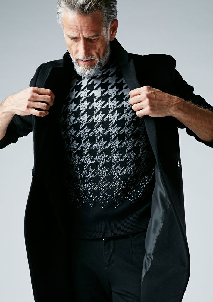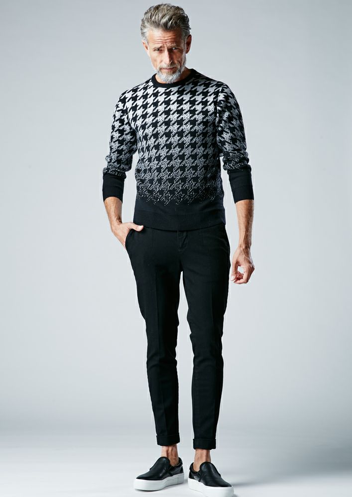【AKM】MERINO WOOL ARGYLE BIG CREW NECK -BLACK / WHITE-