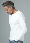 男の冬のワードローブには欠かすことが出来ないインナーの代名詞であるワッフル(7ゲージ)クルーネックを CASH WOOL 100% にて作りました。