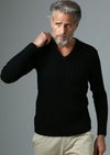 新作の 5G (ゲージ)の変則リブ編みによる長袖Vネックです。変則リブの編地に重点を置き、型はシンプルにしながらも大人の男にマッチする風格ある