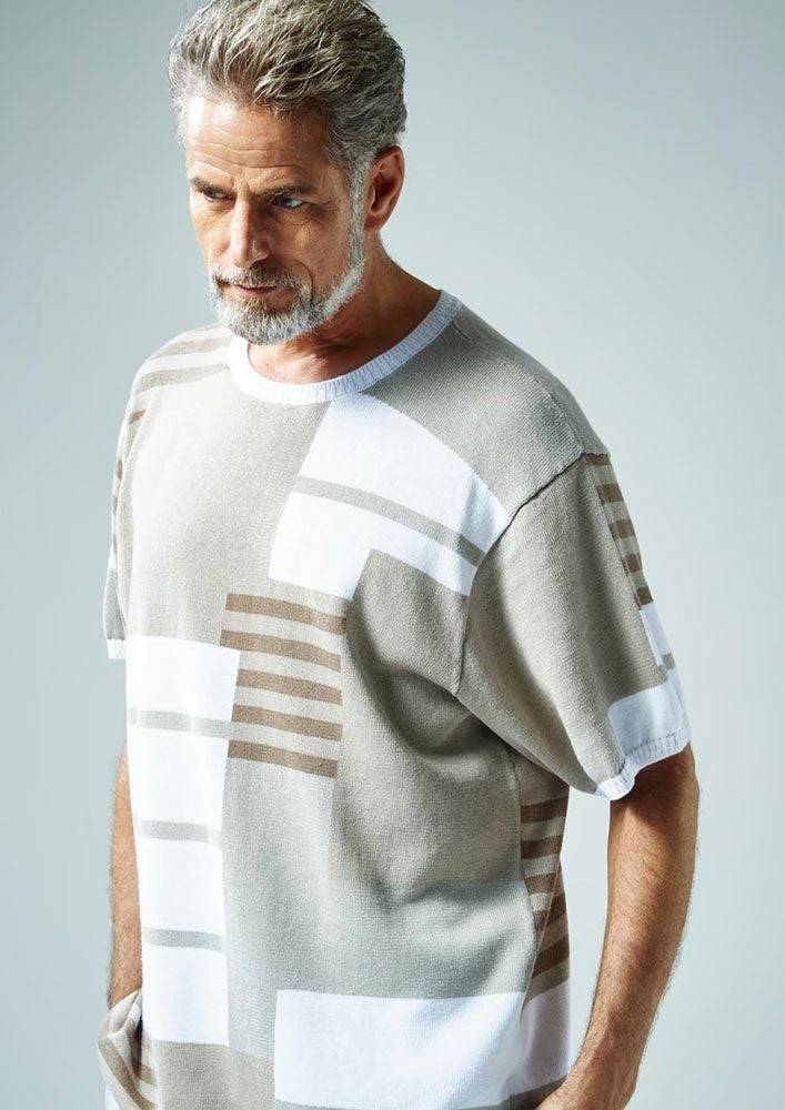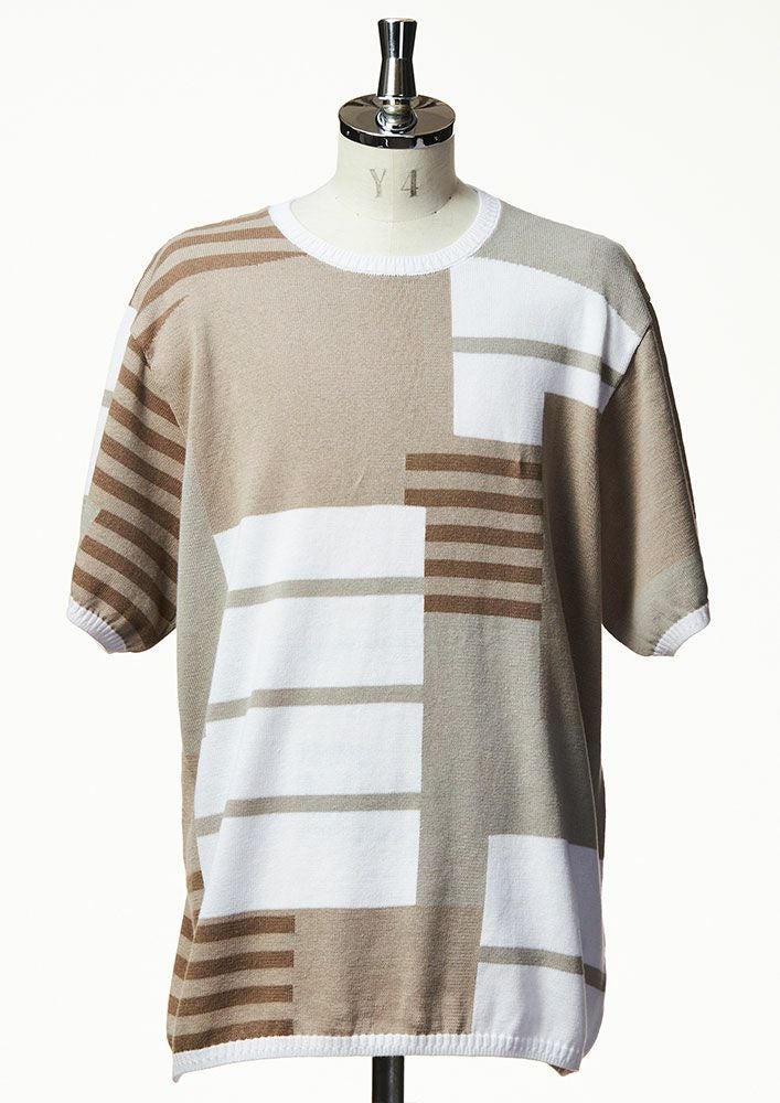 【AKM】COMBED L/S RELAX PATCHWORK KNIT -WHITE-
