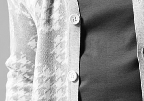 伸縮性がありソフトに編み上げる事が可能な編み組織です。釦は本水牛六穴釦を採用。