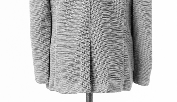 凹凸を際立たせた奇麗な印影とハリコシの有る安定したニット生地は春夏ジャケットを爽やかでありながら、しっかりしたシルエットに見せてくれます。