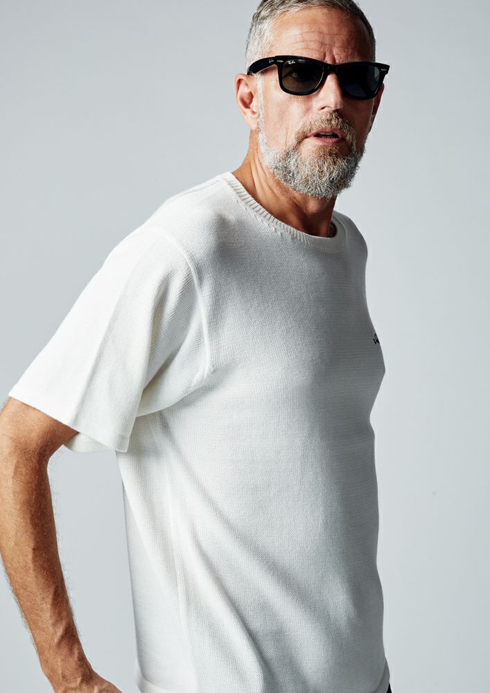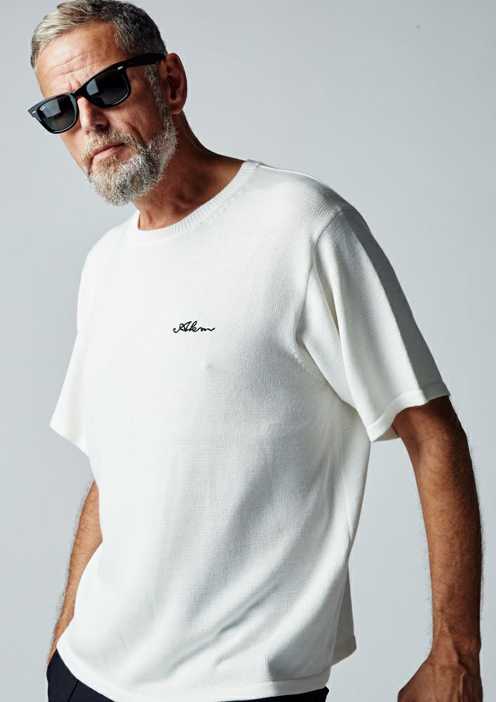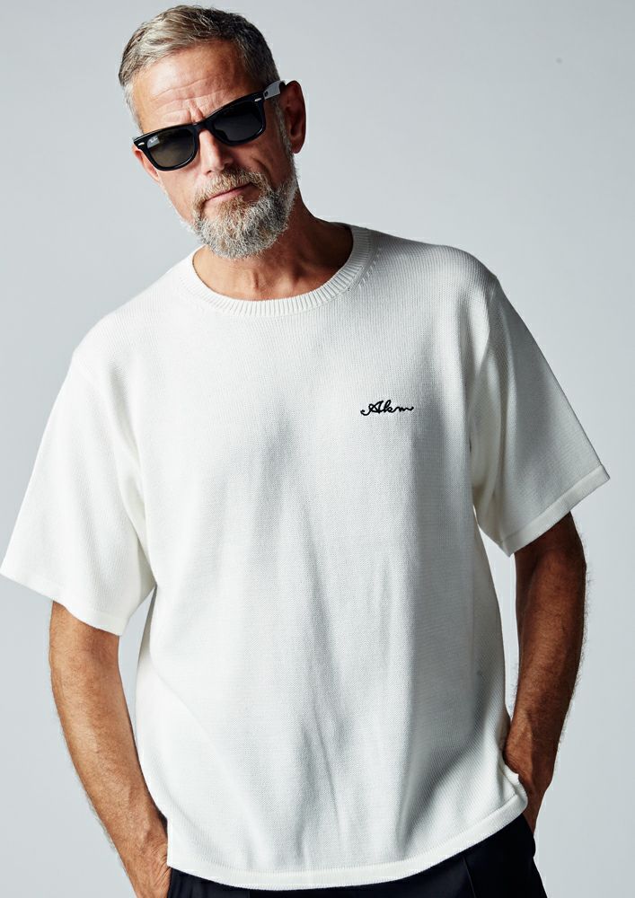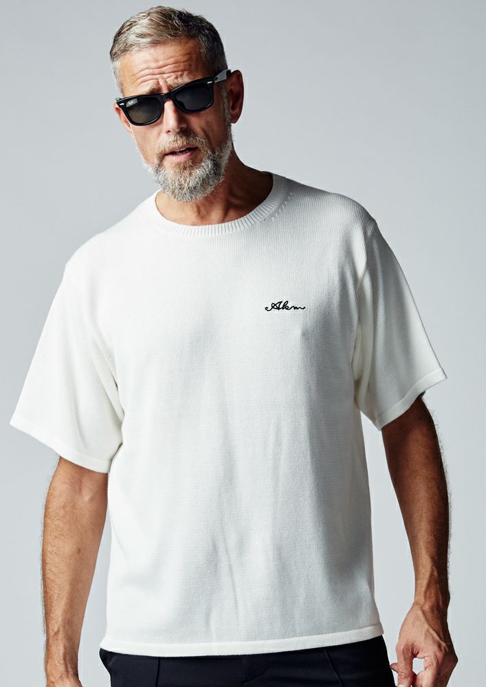 【AKM】S/S BIG CREW KNIT T-SH -WHITE-