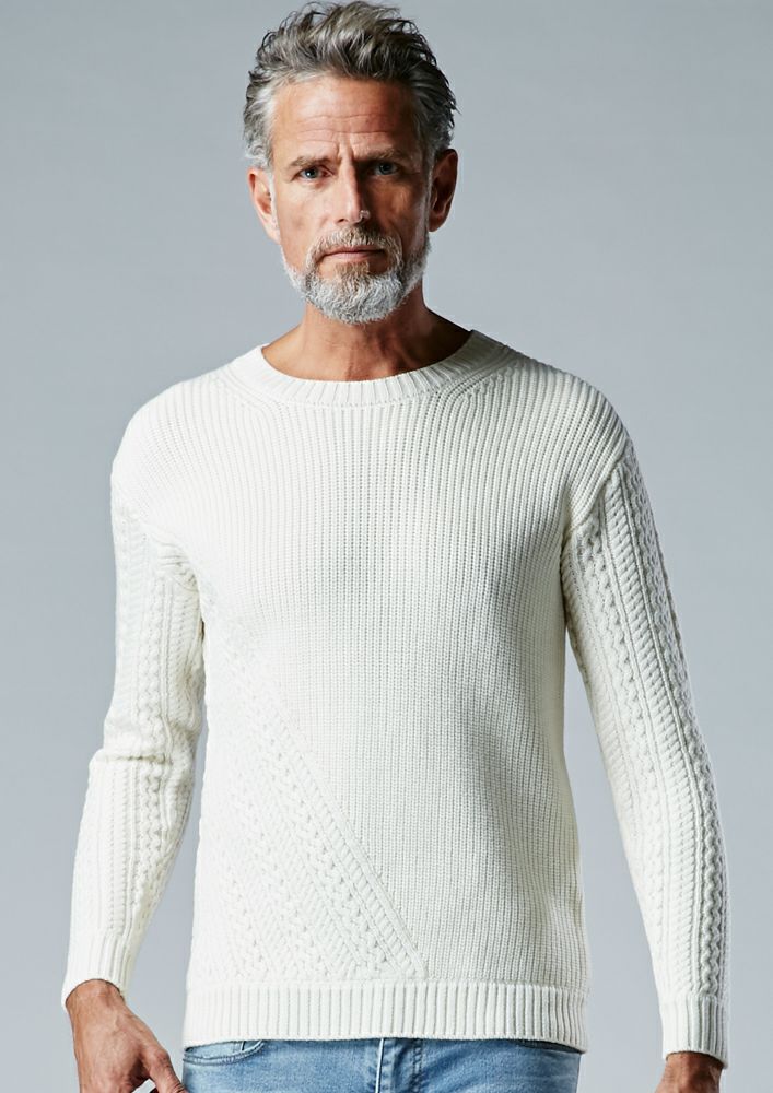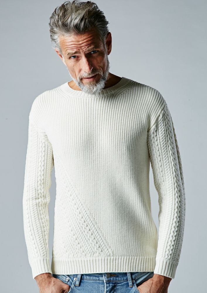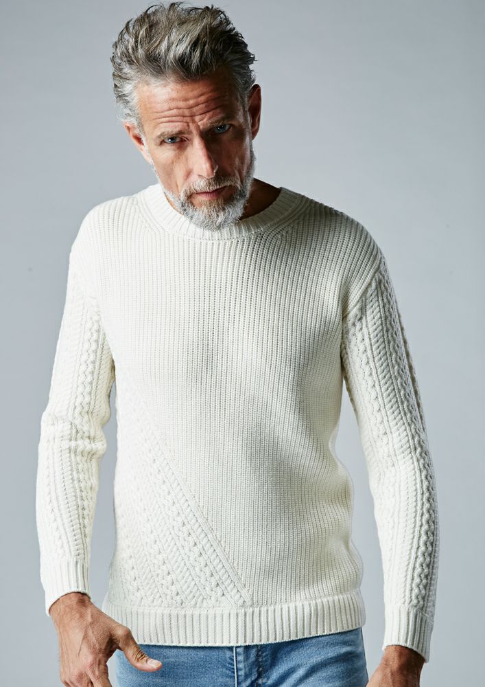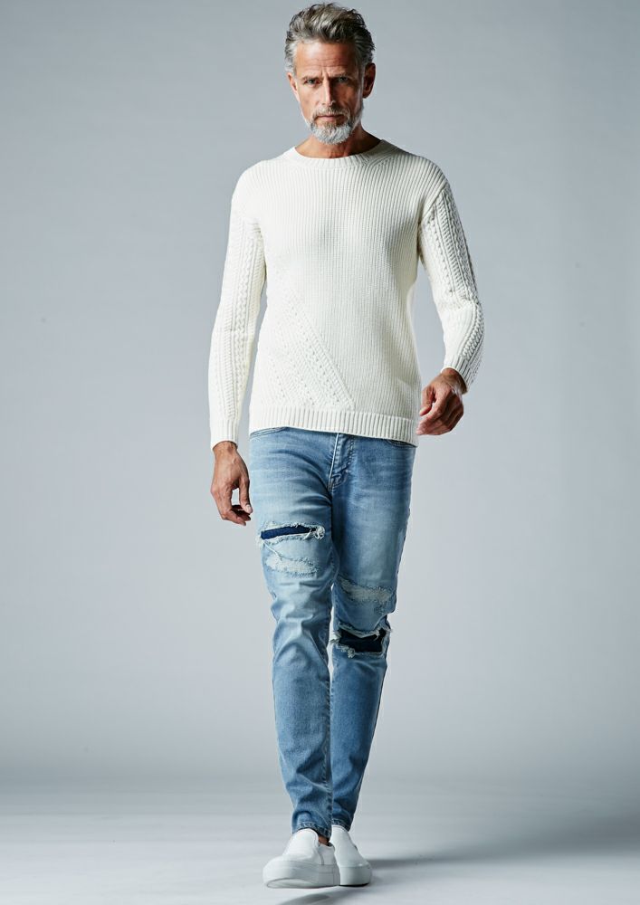 【AKM】CASHWOOL CRAZY FISHERMAN CREW -WHITE-