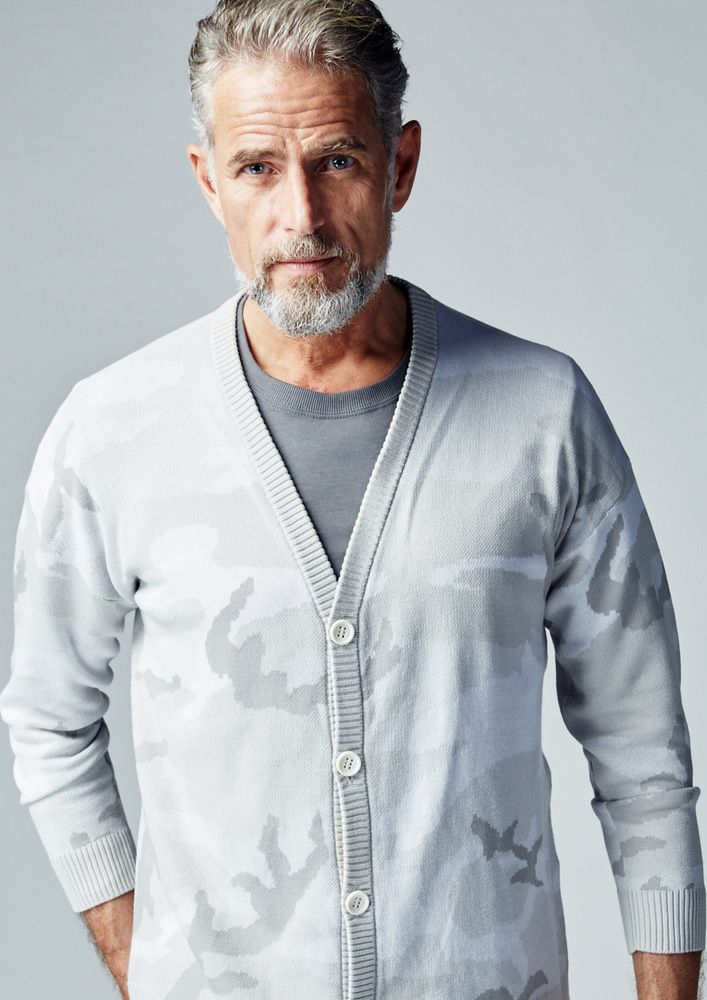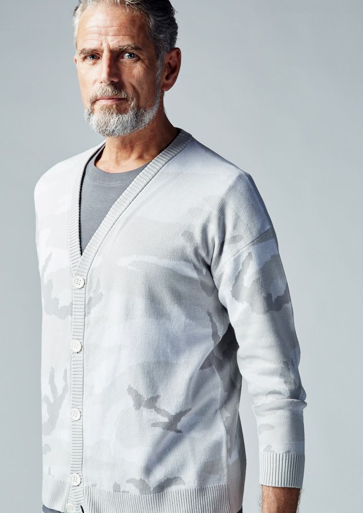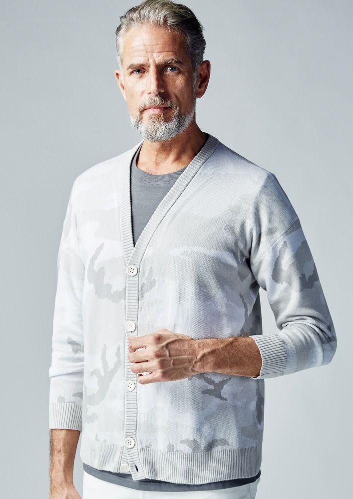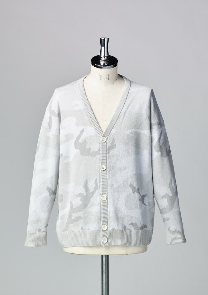 【AKM】DOMINO CAMO DROP SHOULDER CARDIGAN -WHITE CAMO-