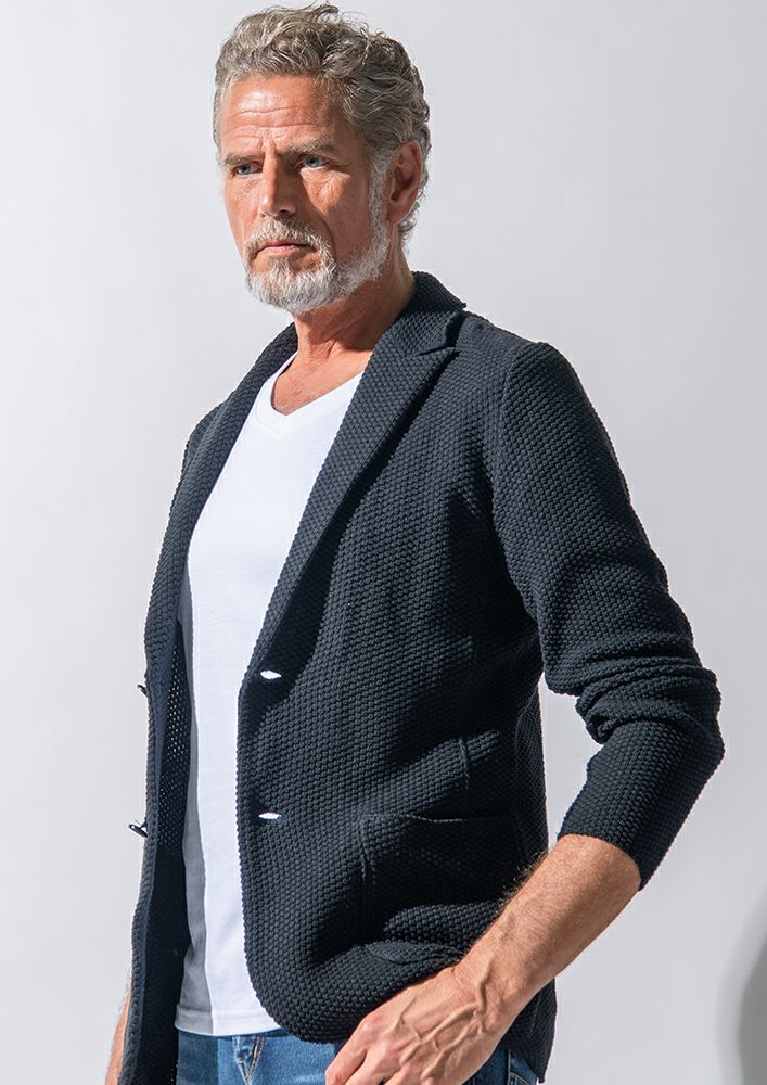 【AKM】CASHWOOL CHIDORI 2B JK -BLACK/L.GRAY-