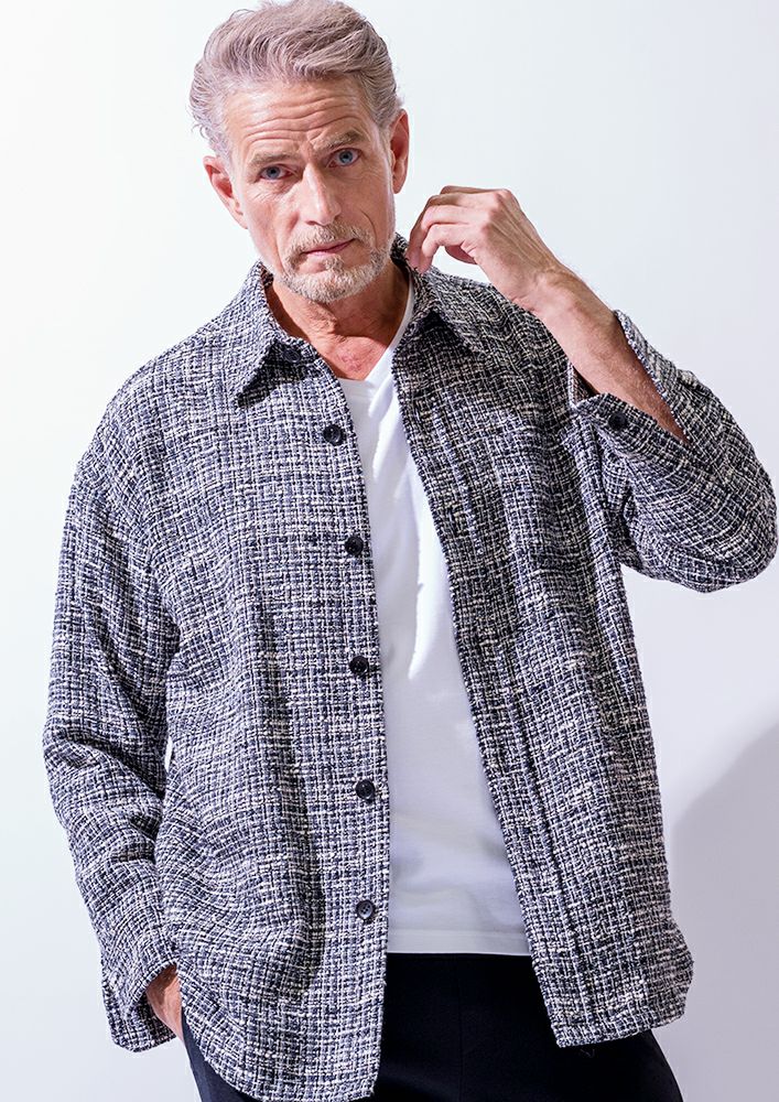 【AKM】LAME MIX FANCY TWEED SHIRTS BLOUSON -BLACK-