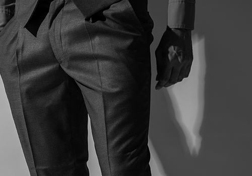 ジャケット・スラックススタイルに更なるフォーマル感を高めるジレ。中衣として過度なデザインは避けています。今季は前身をダブル仕立てにし、肩巾、身巾、袖巾など着用しやすく、且つ美しいシルエットを生むようにパターンを再構築しています。本水牛六穴釦、フラップポケットを採用し、 後身は滑りを改善する為にキュプラ素材を採用しています。