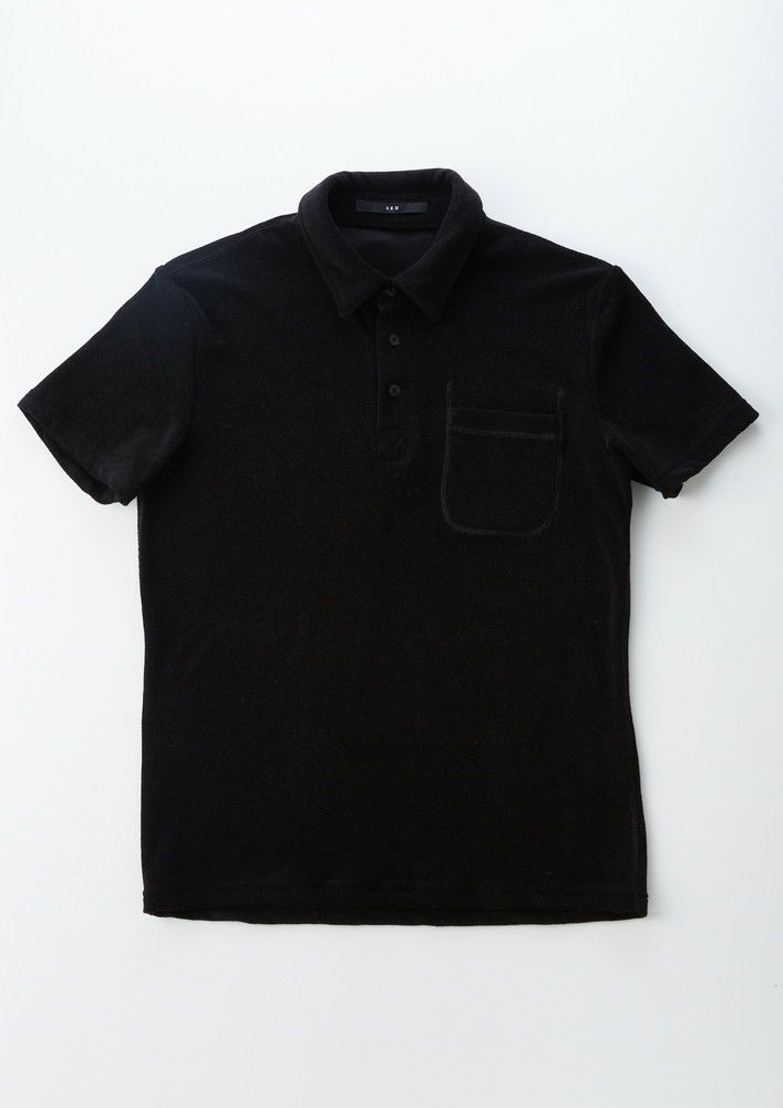 春夏の定番半袖スキッパーポロです。今季は小ぶりのレギュラー衿を採用し、左胸にパッチポケットを付けてアクセントにしています。釦はAKM刻印入りの本水牛四つ穴釦を採用しています。