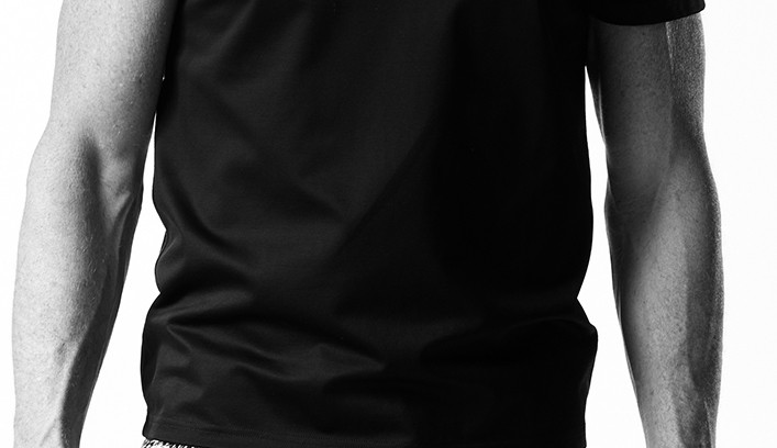 小ぶりのレギュラー衿を採用し、前開きを浅くし、フロント釦を排除することで、シンプルに仕上げています。