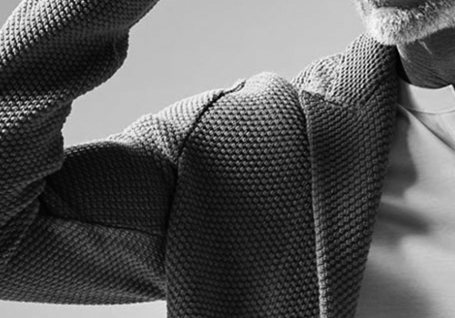 裏地を無くして着心地が良く袖巾はスッキリ細めな粋なニットJKを着て頂きたくて