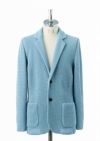 凹凸を際立たせた奇麗な印影とハリコシの有る安定したニット生地は春夏ジャケットを爽やかでありながら、しっかりしたシルエットに見せてくれます。