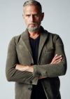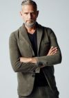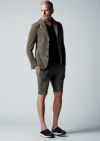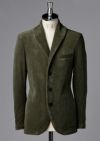 ショール衿の3釦ジャケットです。脇下の細腹をリブ使いし、