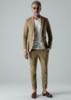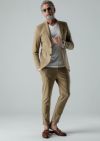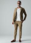 AKM定番のSWING EASY SET-UP。パッチポケットが特徴的なシングルノッチドラペルジャケットと定番のEASYテーパードスラックスです。 過去にLEON誌タイアップにて発表したモデル同様、発熱効果のあるポンチ素材を採用し、 一枚仕立てで軽量に仕上げながらもウォーム効果がある素材を採用することで、秋冬仕様へと昇華しています。 ストレッチ性にも富んでいるので快適な着用感を保証します。釦は AKM 定番の本水牛六穴釦です。 今期はパンツの裾をダブル仕上げにてご提案します。