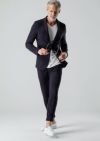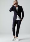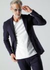 AKM定番のSWING EASY SET-UP。パッチポケットが特徴的なシングルノッチドラペルジャケットと定番のEASYテーパードスラックスです。 過去にLEON誌タイアップにて発表したモデル同様、発熱効果のあるポンチ素材を採用し、 一枚仕立てで軽量に仕上げながらもウォーム効果がある素材を採用することで、秋冬仕様へと昇華しています。 ストレッチ性にも富んでいるので快適な着用感を保証します。釦は AKM 定番の本水牛六穴釦です。 今期はパンツの裾をダブル仕上げにてご提案します。
