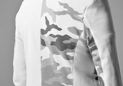 さらに今回から生地でのタンブラー加工を施し、仕上がり後の 縮率の誤差の低下も実現し、風合いもさらにソフト感とふっくら感が増しています。 今回はパイル面を裏に使用して、ふっくらしたパイルの柔らかさを肌面で感じられる仕上がりです。 さらに生地の状態で、顔料プリントにて""AKMオリジナルCAMO柄”をほどこしたものも展開しています。