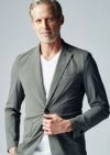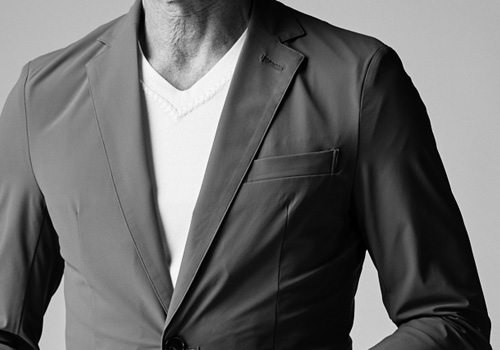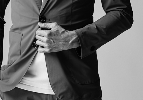 裏地なしの軽量一枚仕様はそのままで、今季はラペル巾を若干補足しパッチポケットを採用しております。釦はAKM定番の本水牛六穴釦です。
