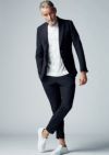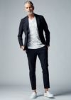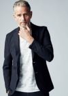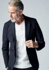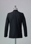 今季はラペル巾を若干補足しパッチポケットを採用しております。釦はAKM定番の本水牛六穴釦です。