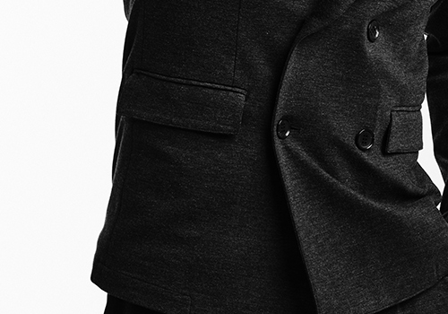 AKM秋冬定番のデュアルウォームSWING EASY SET-UP。今季は無地のみの展開で、フラップポケットが特徴的なダブルピークドラペルジャケットを新たにラインナップ。発熱効果のあるポンチ素材を採用し、一枚仕立てで軽量に仕上げながらもウォーム効果がある素材を採用することで、秋冬仕様へと昇華しています。ストレッチ性にも富んでいるので快適な着用感を保証します。釦は AKM 定番の本水牛六穴釦です。